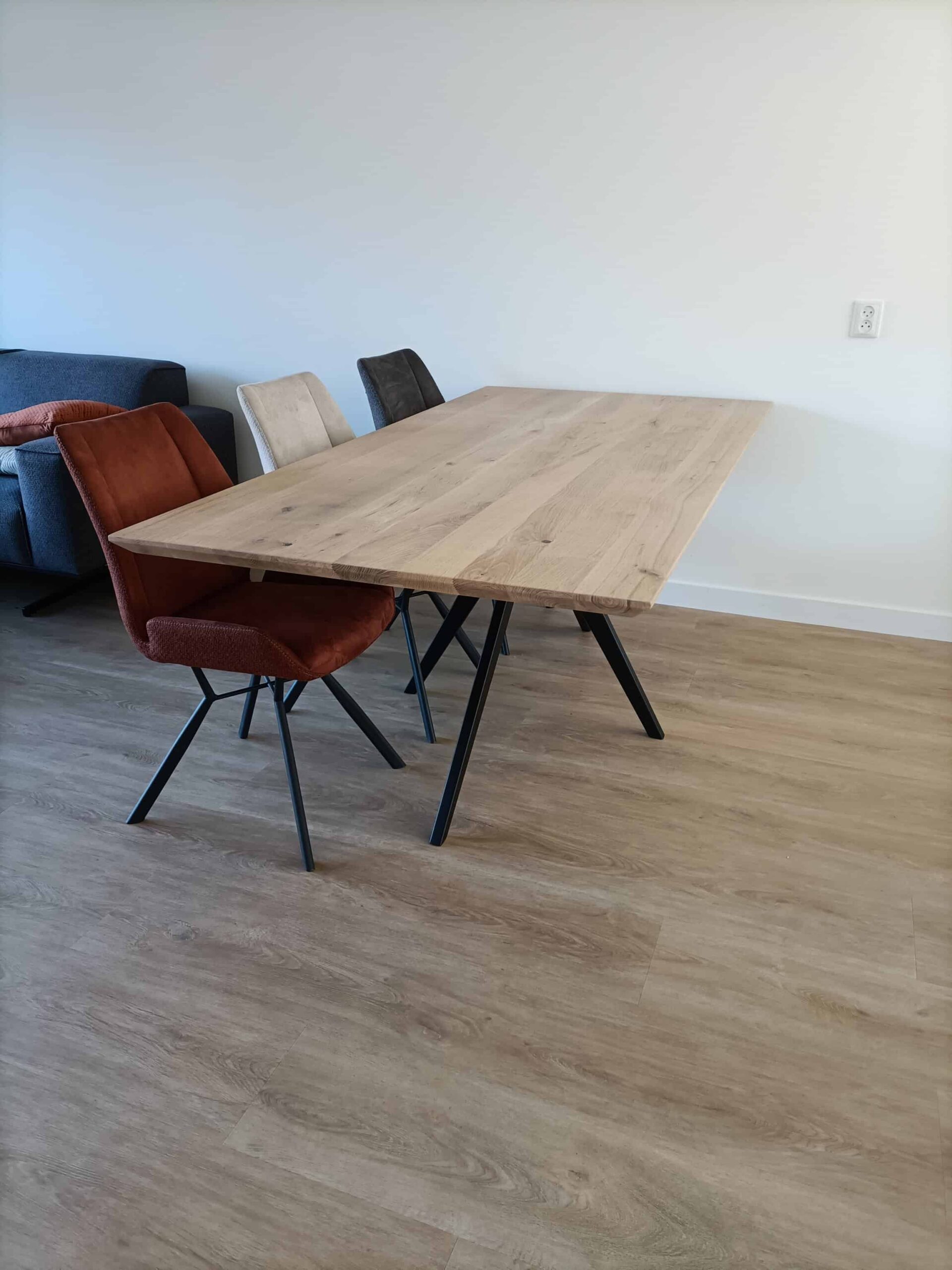 Wij verkopen rustiek eiken tafels, dit betekent dat de planken zijn geselecteerd op levendig hout met hier en daar een mooie knoest.